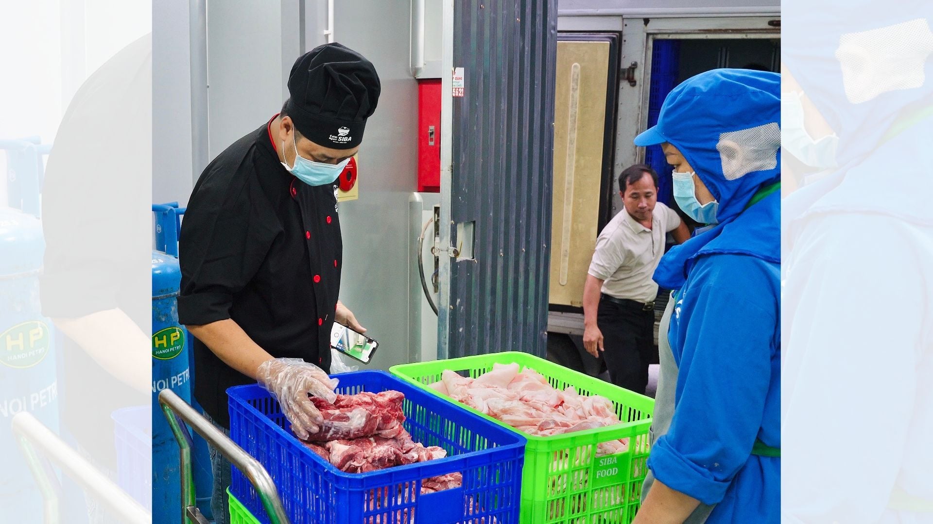 - Thịt được chuyển trực tiếp từ lò mổ về Bếp Trung Tâm